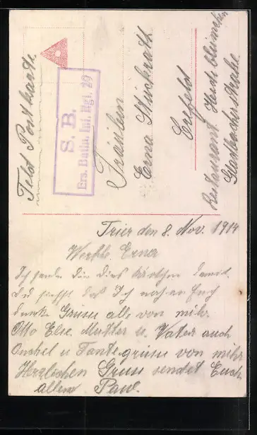 alte Ansichtskarte, gelaufen als Feldpost 1914, guter Zustand