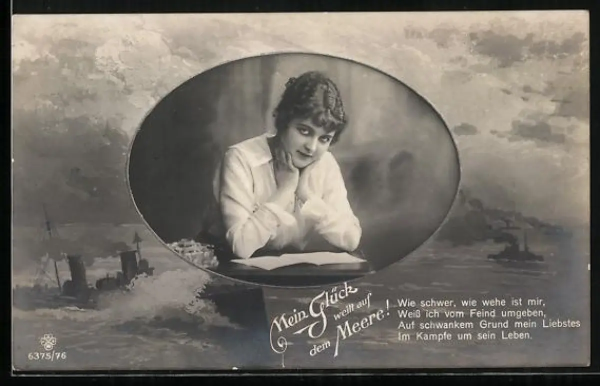 Foto-AK RPH SBW Nr. 6375/76: Frau liest einen Brief, Schiffe auf See