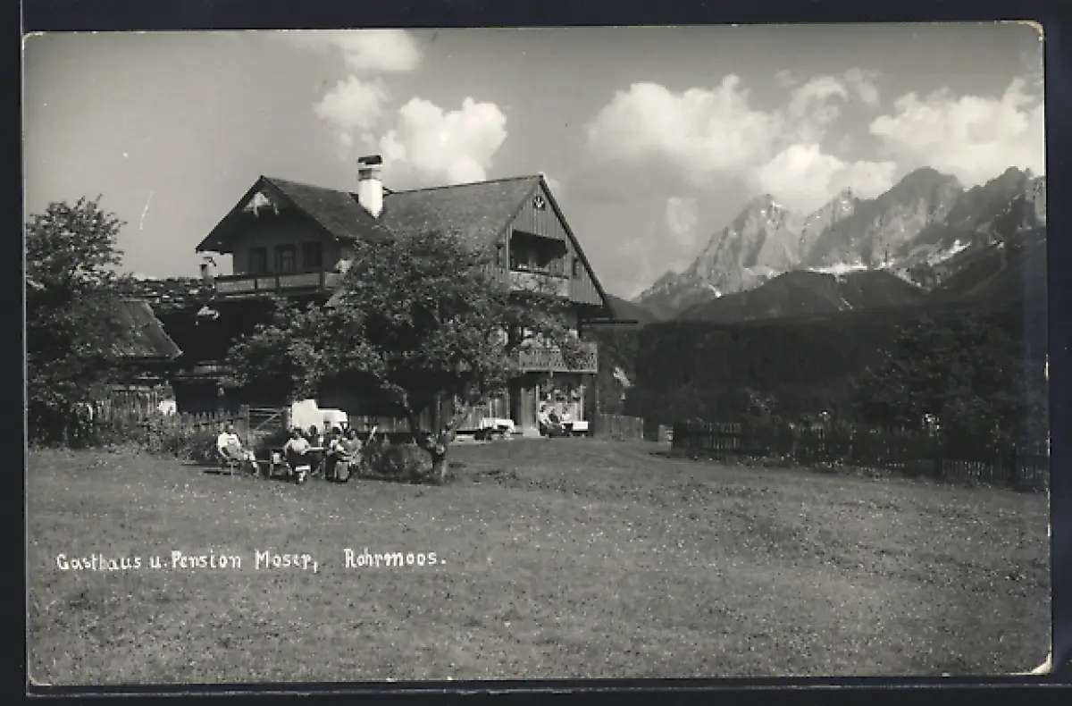 Foto-AK Rohrmoss, Gasthaus Moser mit Alpenpanorama
