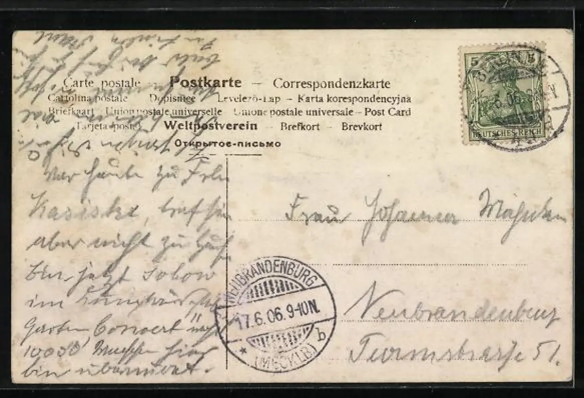 alte Ansichtskarte, gelaufen 1906, Bugspur oben mittig, guter Zustand