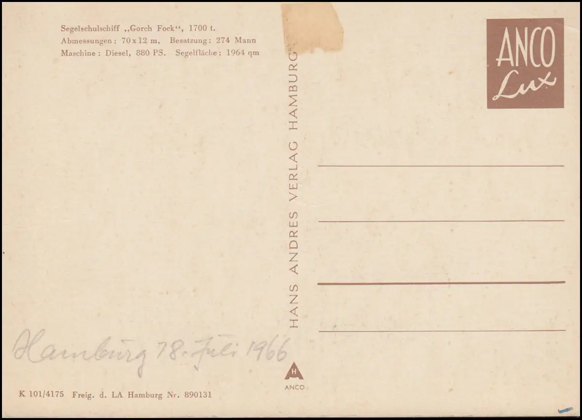 Foto-AK Schiffe: Segelschulschiff GORCH FOCK 1966, Verlag Anders, ungebraucht