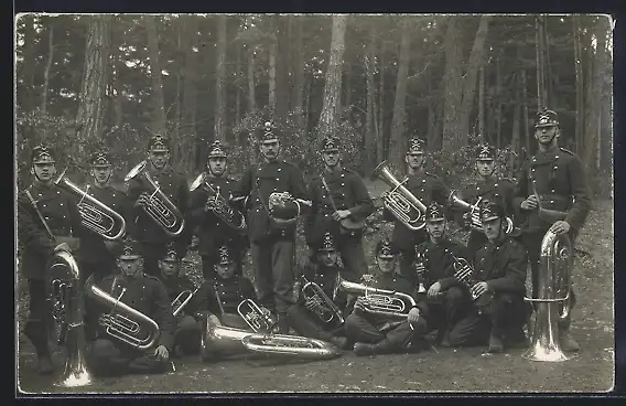 Foto-AK Schweizer Soldaten in Uniform mit Instrumenten
