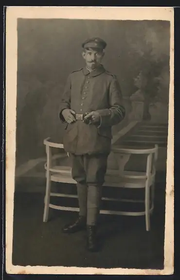 Foto-AK Soldat in Feldgrau Uniform F. K. Dep. 34