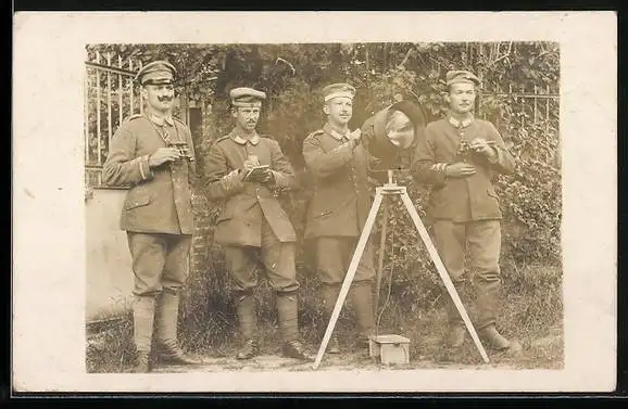 Foto-AK Soldaten eines Signaltrupp mit Scheinwerfer