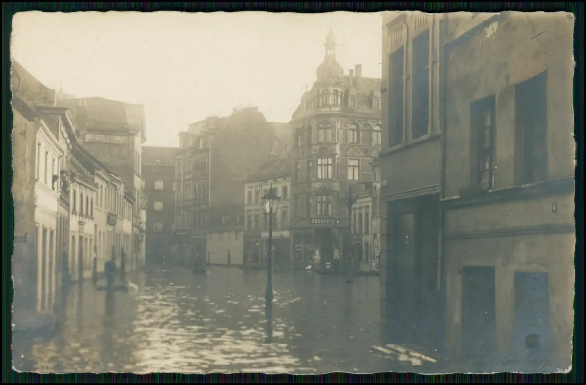 Foto AK - Stadt wer weiß Wo ? - Überschwemmung 1910er Wasserflut Flutkatastrophe