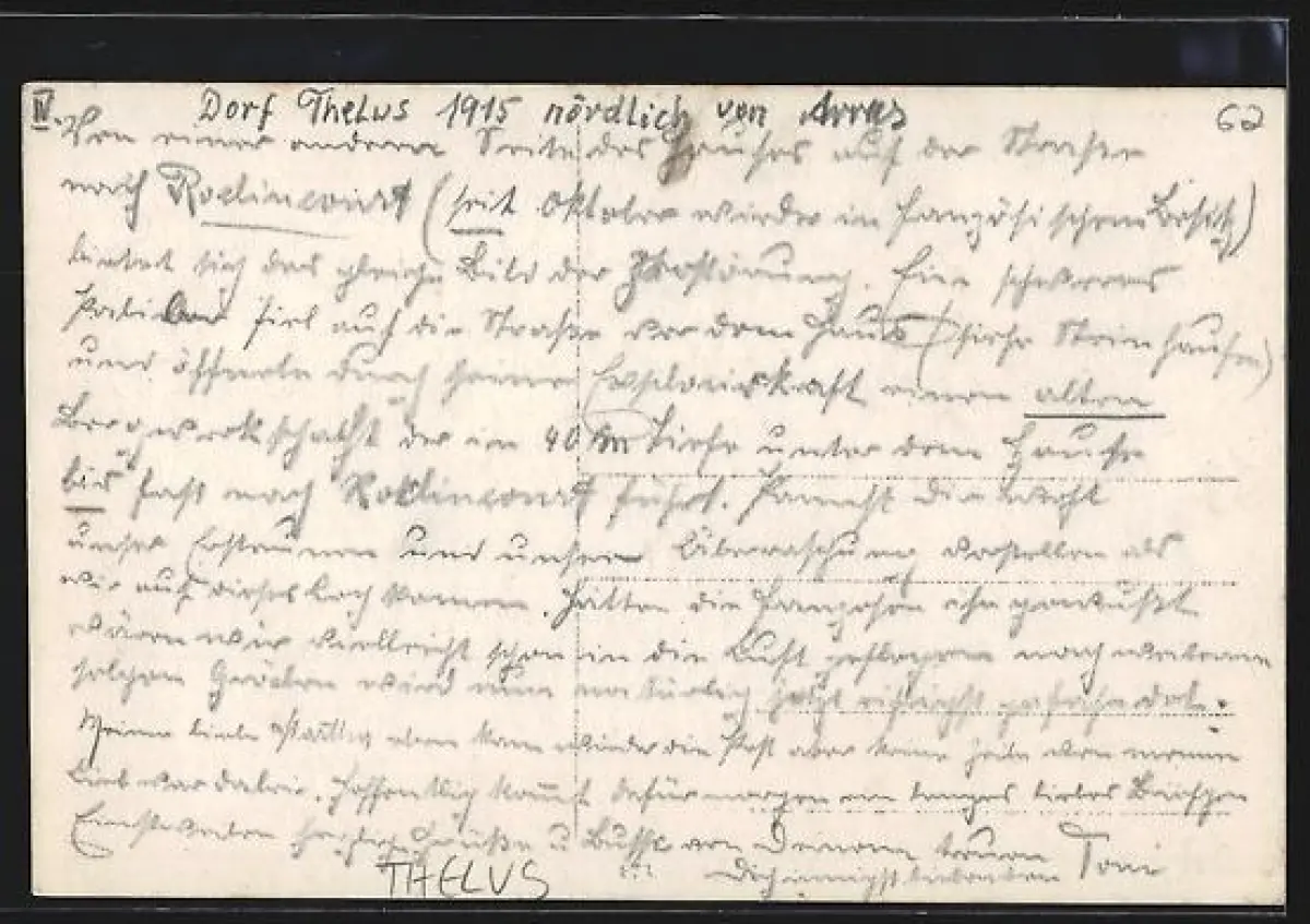 Foto-AK Thélus, Bâtiments en ruines avec voies ferrées au premier plan