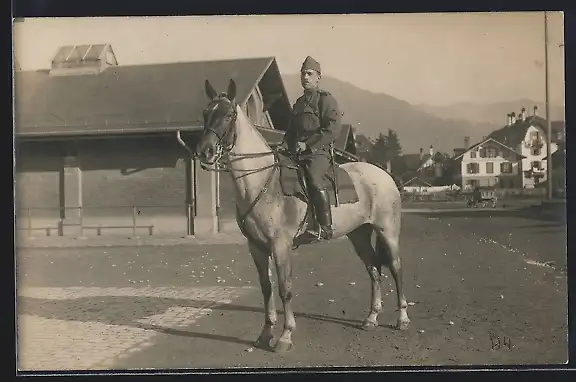 Foto-AK Thun, Uniformierter Soldat zu Pferd