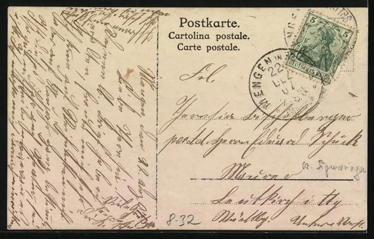 alte Ansichtskarte, gelaufen, Stempelspur, Abriebspuren, guter Zustand