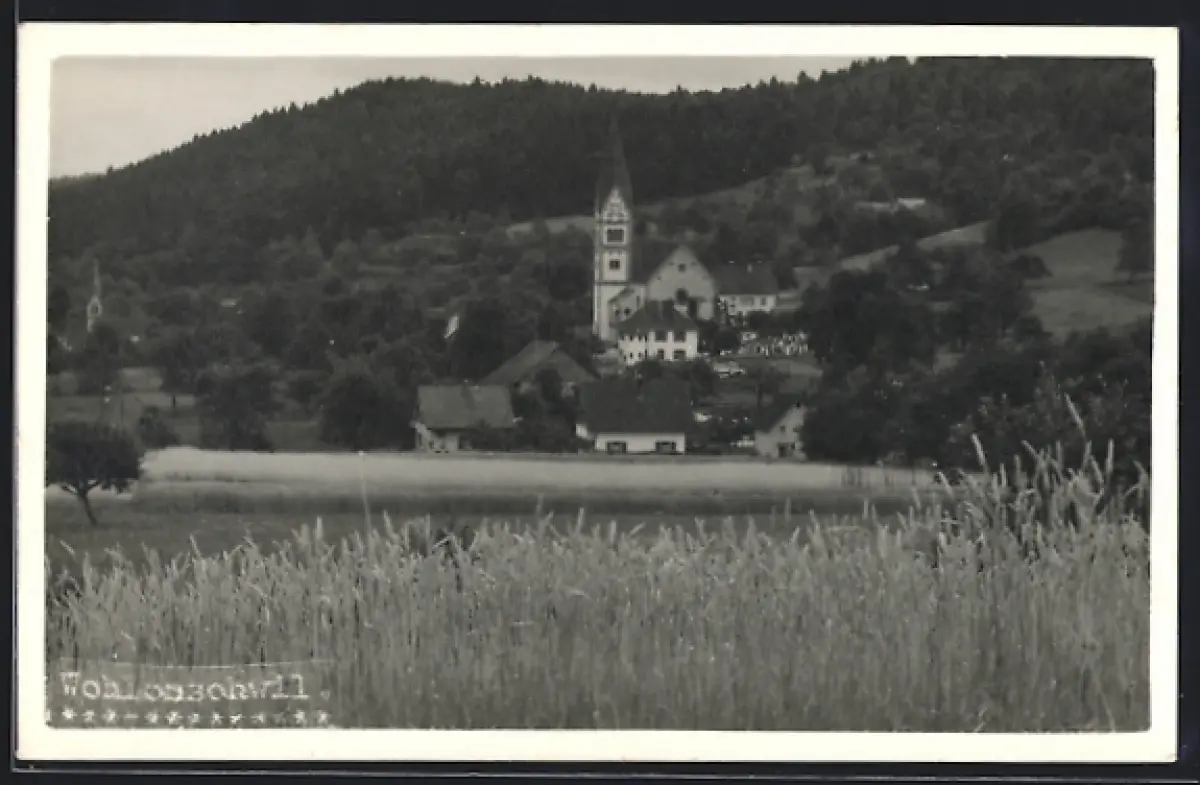 Foto-AK Wohlenschwil, Blick zur Kirche von Kornfeld aus