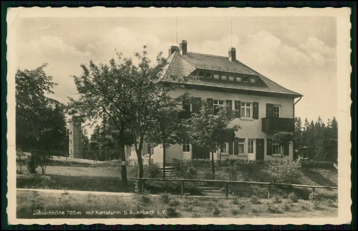 Foto AK Zöbischhöhe mit Karlsturm bei Auerbach i.V. - 1943 Feldpost gelaufen
