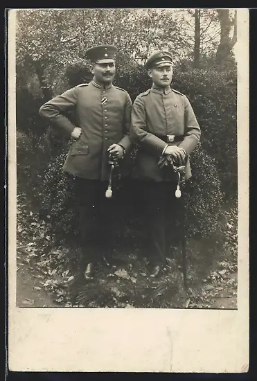 Foto-AK zwei Uffz. in Uniform Rgt. 39 mit Säbel, eingestecktes Ordensband