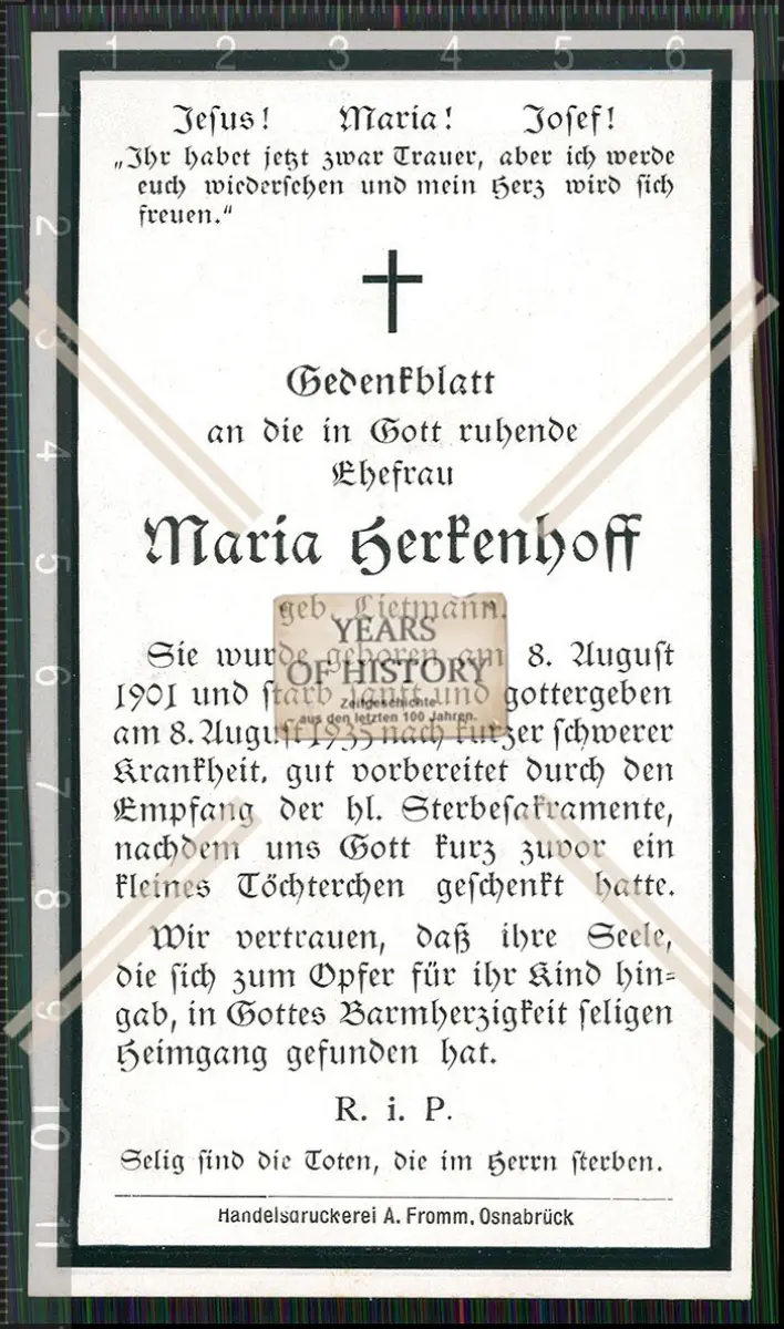 Foto und Sterbebild Maria Kerkenhoff