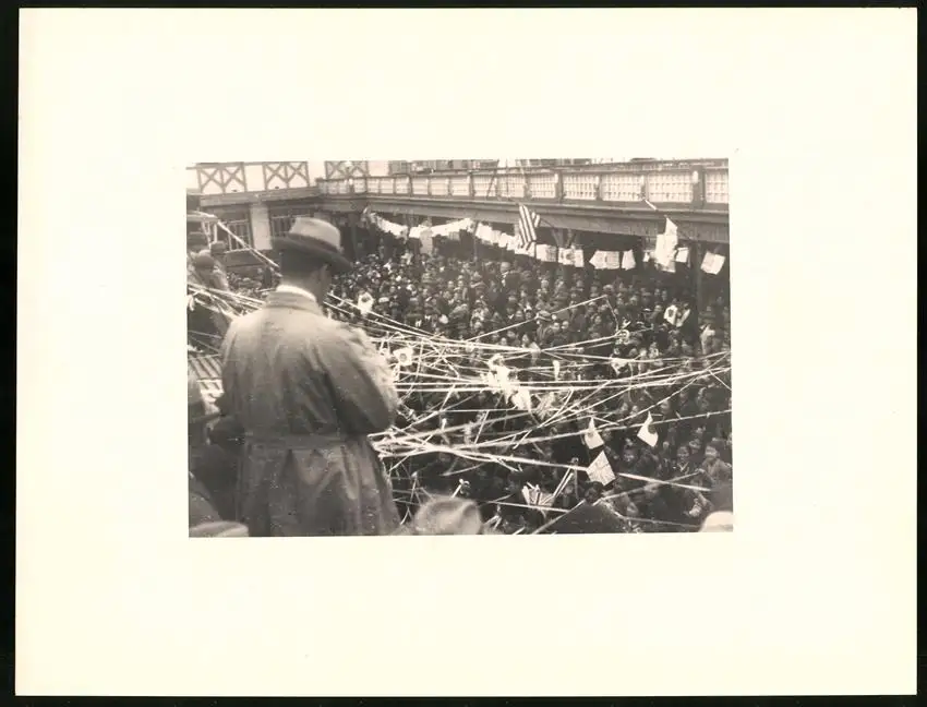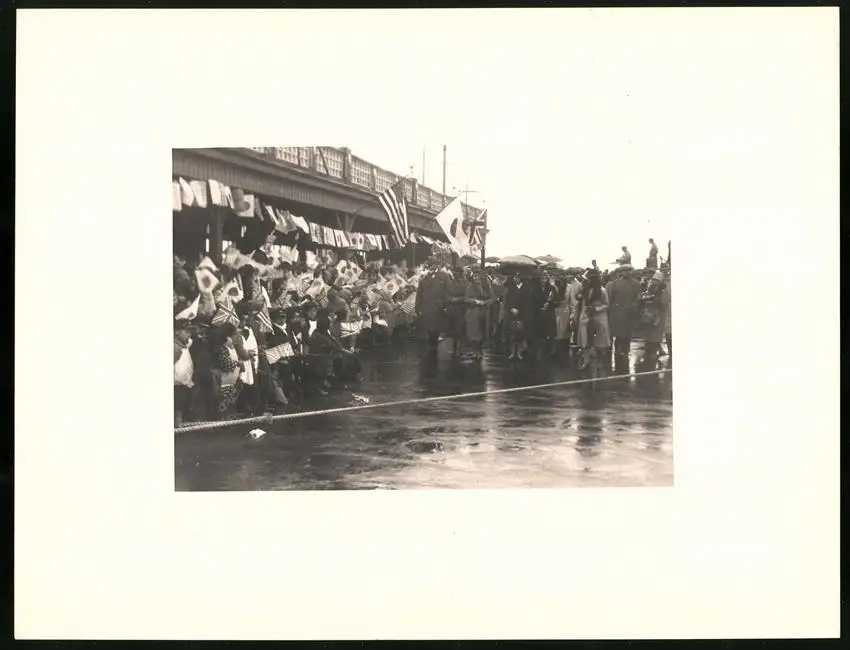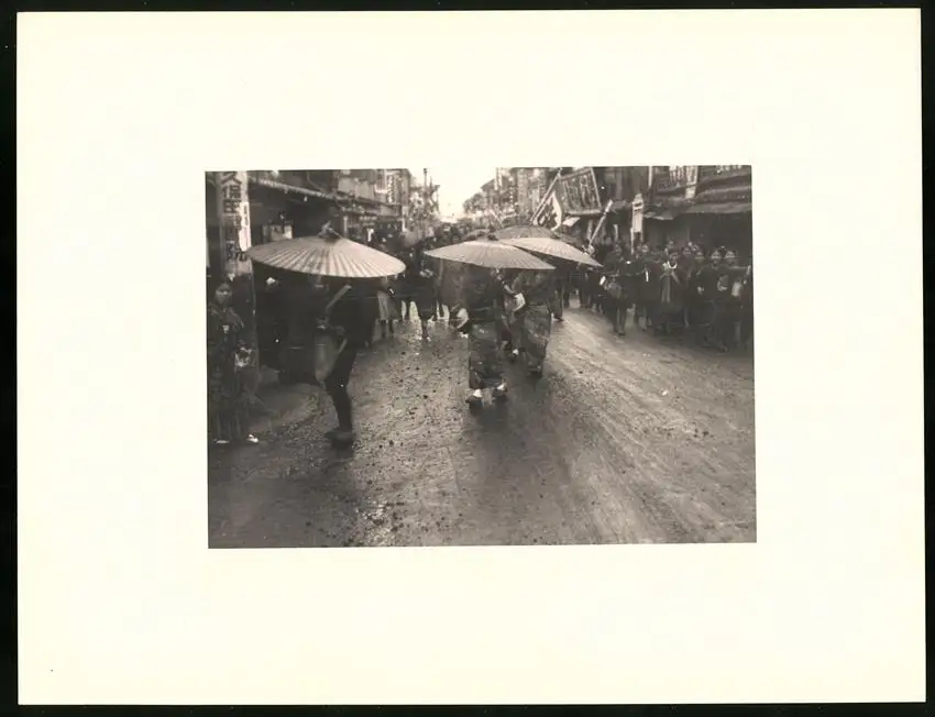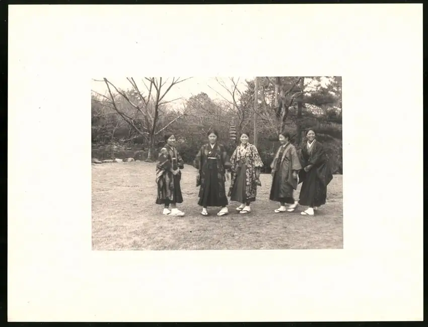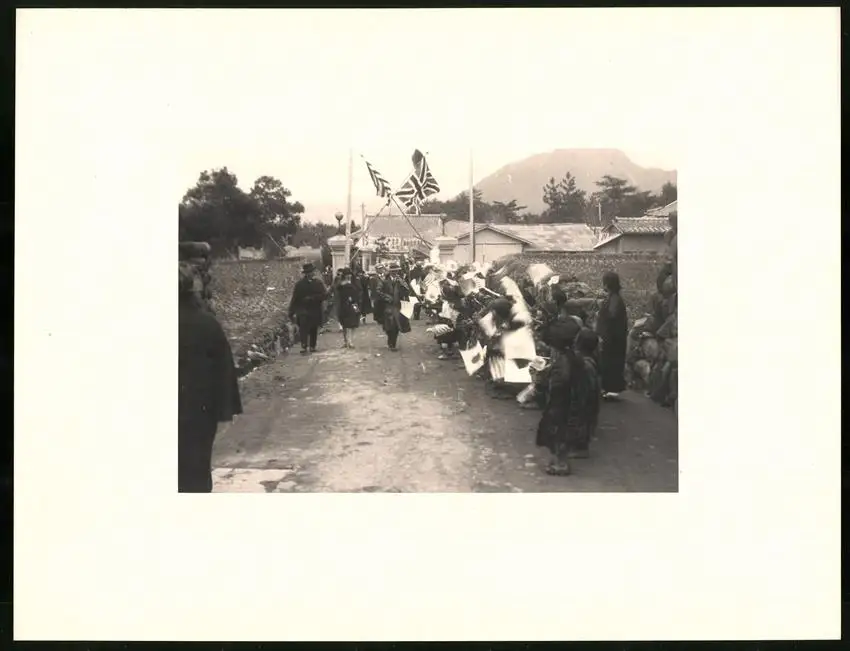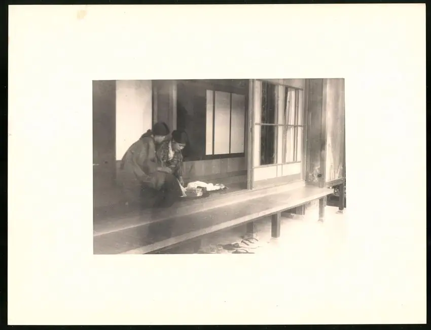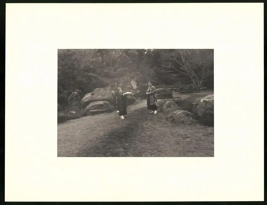 Fotomappe 4. - 7. III. 1930 mit 90 Fotogravur zeigen Japan mit Beppu, Binnensee, Kobe und Nara, Straßenleben in Beppu mit Einheimischen und Geschäften, Schulkinder empfangen die Reisenden in Beppu mit wehenden Fahnen, Landestypisches Pferdefuhrwerk, Einwohner verabschieden die Reisenden aus Beppu, schöne Eisenbahnbrücken auf der Fahrt Kobe-Kyoto, Blick auf den Todaiji Tempel in Nara, Tierpark in Nara mit den heiligen Rehen, Insel im Japanischen Binnensee, Aufgang zum Kaiserlichen Mausoleum, Schreine Tempel am Wege, Besuch in einem Japanischen Wohnhaus mit Zen Garten, Geisha Tanz im City Auditorium, Hafen Einfahr in Beppu, Heiße Quellen ( Onsen) in Beppu, Dampfer "Empress of Britain" im Hafen von Beppu, Rikscha Fahrer in Nara, Nara-no-Daibutsu, Großer Glockenturm im Tempel, Reisende bei der Wildtierfütterung im Tierpark Nara, alle Tafeln sind jeweils auf der Rückseite mit einer Bildbeschreibung und Datum versehen, Fotomappe im grünen Ledereinband und auf der Front mit golden geprägten Schruftdruck "Japan, Beppu, Binnensee, Kobe, Nara 4. - 7. März 1930" versehen, guter Zustand Größe ca. 21,0 x 16,0cm