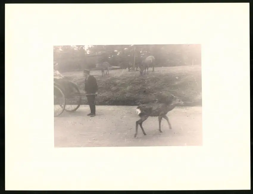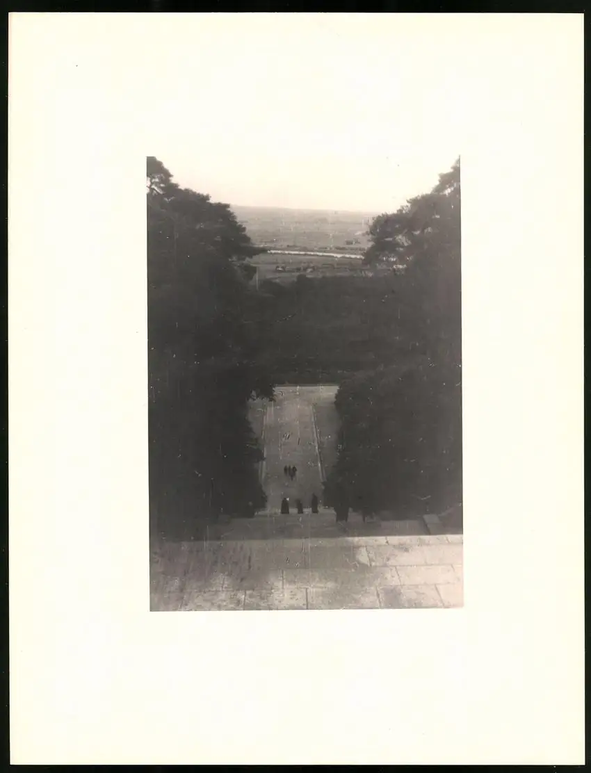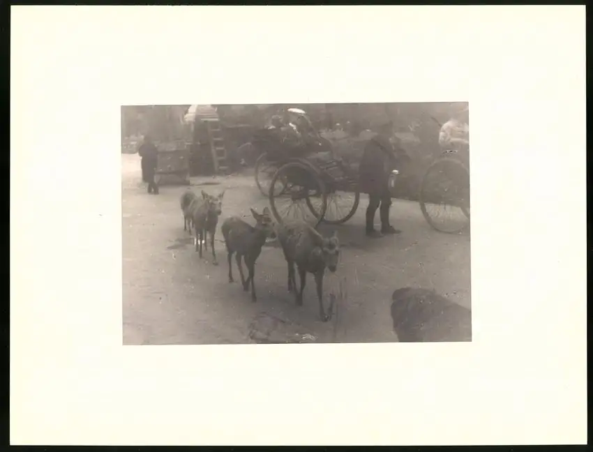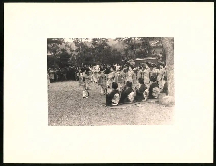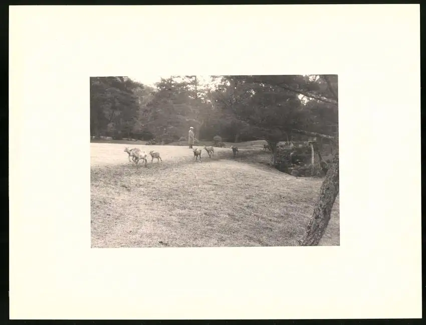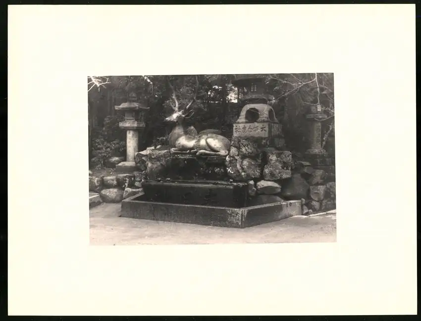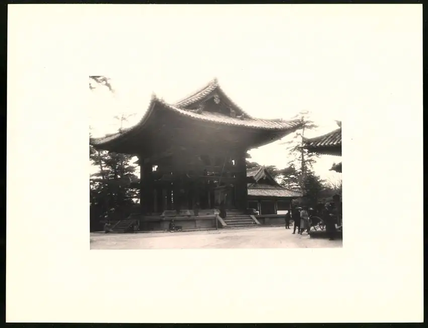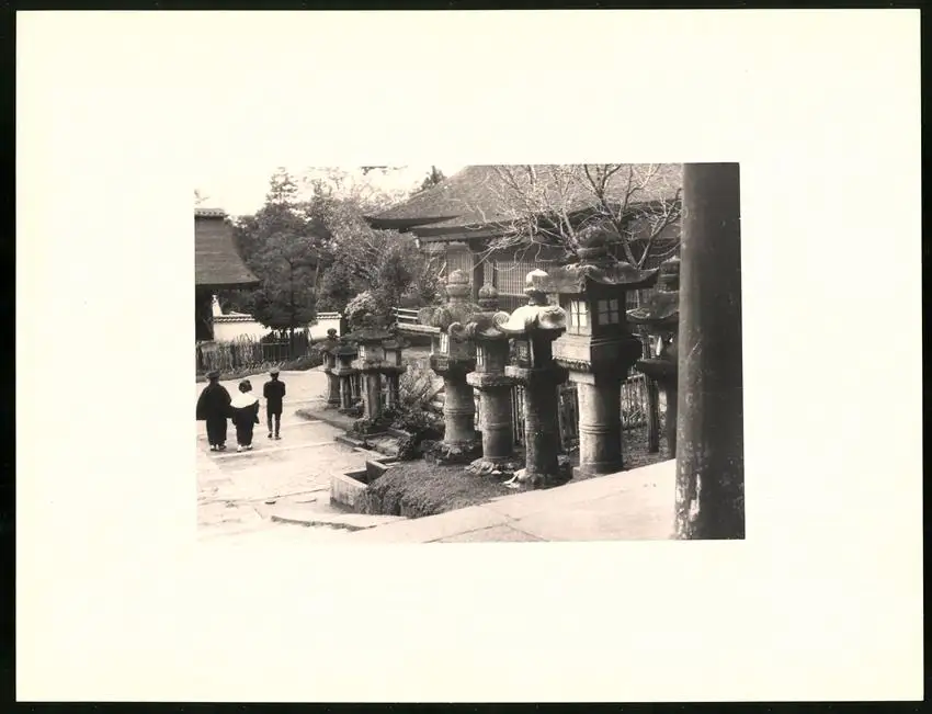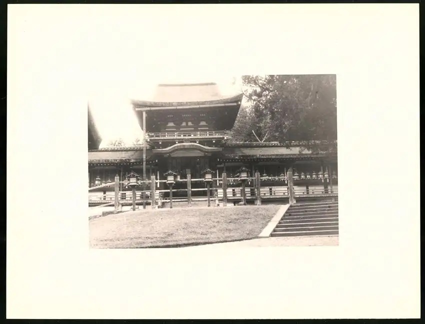 Fotomappe 4. - 7. III. 1930 mit 90 Fotogravur zeigen Japan mit Beppu, Binnensee, Kobe und Nara, Straßenleben in Beppu mit Einheimischen und Geschäften, Schulkinder empfangen die Reisenden in Beppu mit wehenden Fahnen, Landestypisches Pferdefuhrwerk, Einwohner verabschieden die Reisenden aus Beppu, schöne Eisenbahnbrücken auf der Fahrt Kobe-Kyoto, Blick auf den Todaiji Tempel in Nara, Tierpark in Nara mit den heiligen Rehen, Insel im Japanischen Binnensee, Aufgang zum Kaiserlichen Mausoleum, Schreine Tempel am Wege, Besuch in einem Japanischen Wohnhaus mit Zen Garten, Geisha Tanz im City Auditorium, Hafen Einfahr in Beppu, Heiße Quellen ( Onsen) in Beppu, Dampfer "Empress of Britain" im Hafen von Beppu, Rikscha Fahrer in Nara, Nara-no-Daibutsu, Großer Glockenturm im Tempel, Reisende bei der Wildtierfütterung im Tierpark Nara, alle Tafeln sind jeweils auf der Rückseite mit einer Bildbeschreibung und Datum versehen, Fotomappe im grünen Ledereinband und auf der Front mit golden geprägten Schruftdruck "Japan, Beppu, Binnensee, Kobe, Nara 4. - 7. März 1930" versehen, guter Zustand Größe ca. 21,0 x 16,0cm Fotografien ca. x cm Gewicht: 2,6kg