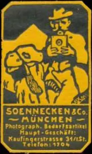 Photographische Bedarfsartikel, Kaufingerstr. 31, I. Stock, Pyramide, Kamel, Größe/Zustand: 5x3 , guter Zustand, Original alte Reklamemarke die seinerzeit für die Werbung benutzt wurde