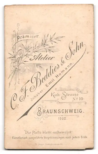 Fotografie C. F. Beddies & Sohn, Braunschweig, Kuhstrasse 10, Portrait einer Dame