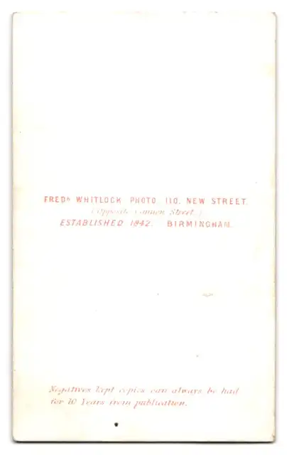 Fotografie Fredk. Whitlock, Birmingham, 110, New Street, Ältere Dame im Kleid mit Haube