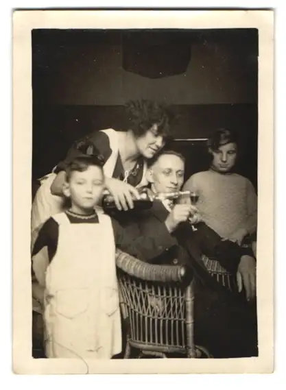 Fotografie Hausmädchen schenkt dem Hausherrn ein Glas Likör ein