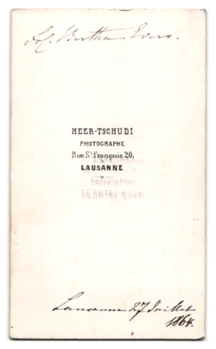 Fotografie Heer-Tschudi, Lausanne, Rue St. Francois 20, Dame Bertha mit Buch am Tisch, 1864