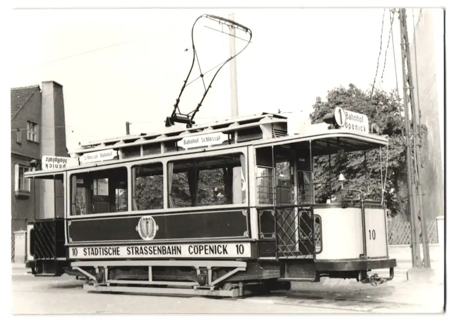 Fotografie Horst Golzsch, Leipzig, Ansicht Berlin, Strassenbahn-Triebwagen Nr. 10 der Linie 1 Richtung Köpenick