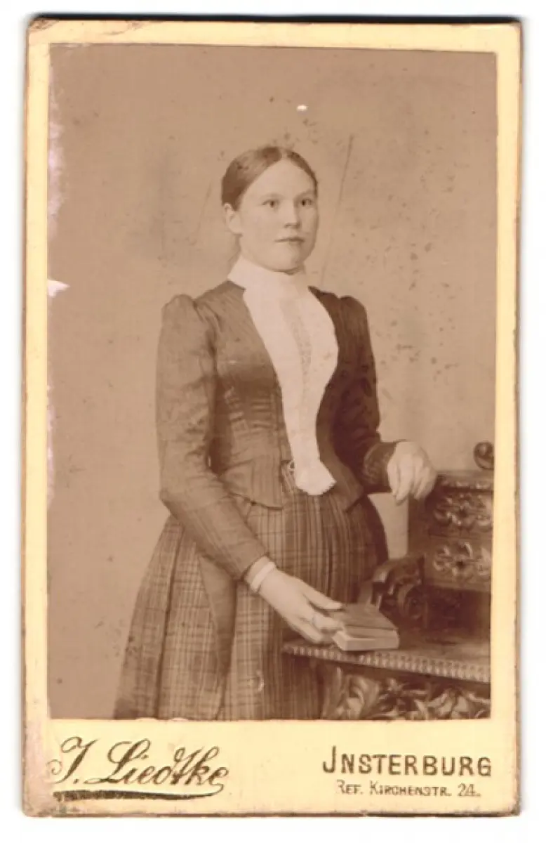 Fotografie J. Liedtke, Insterburg, Ref. Kirchenstr. 24, Dame im eleganten Kleid