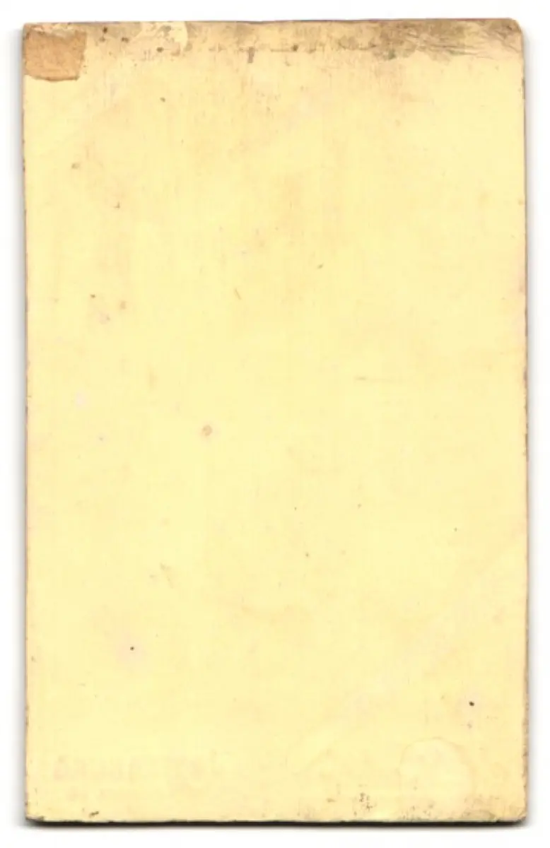 Die CDV Fotografie zeigt eine ernst blickende Frau in einem edlen, langärmligen Kleid, das mit einem feinen Muster verziert ist. Sie steht anmutig neben einem kunstvoll gestalteten Tisch, auf dem ein Buch liegt. Ihr Haar ist ordentlich zurückgebunden und sie trägt eine weiße Bluse, die dem Ensemble eine elegante Note verleiht., rückseitig Klebe- und Papierreste, guter Zustand Größe ca. 6,5 x 10,5cm