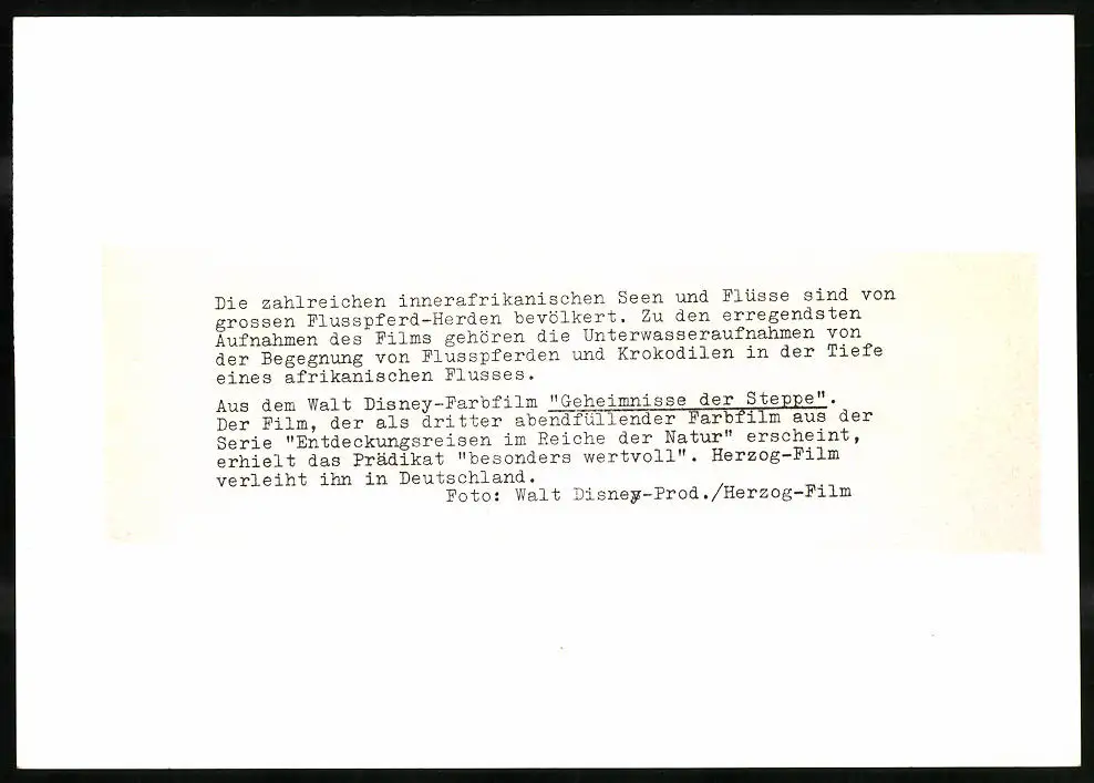 Fotografie Nilpferde - Hippos in einem Fluss in Afrika, Filmszene aus einer Disney Tier-Dokumentation