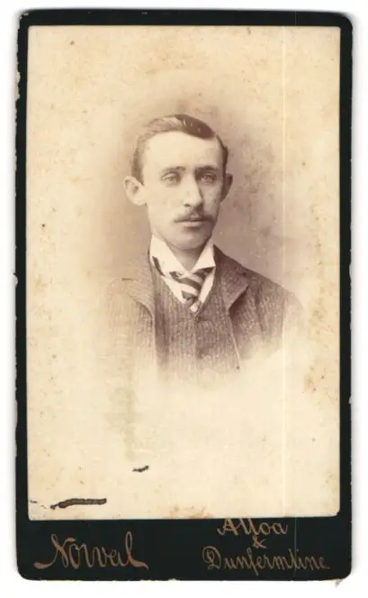 Fotografie Norvals Studios, Alloa, 36 Primrose St., Portrait charmanter Herr mit Schnurrbart im Jackett