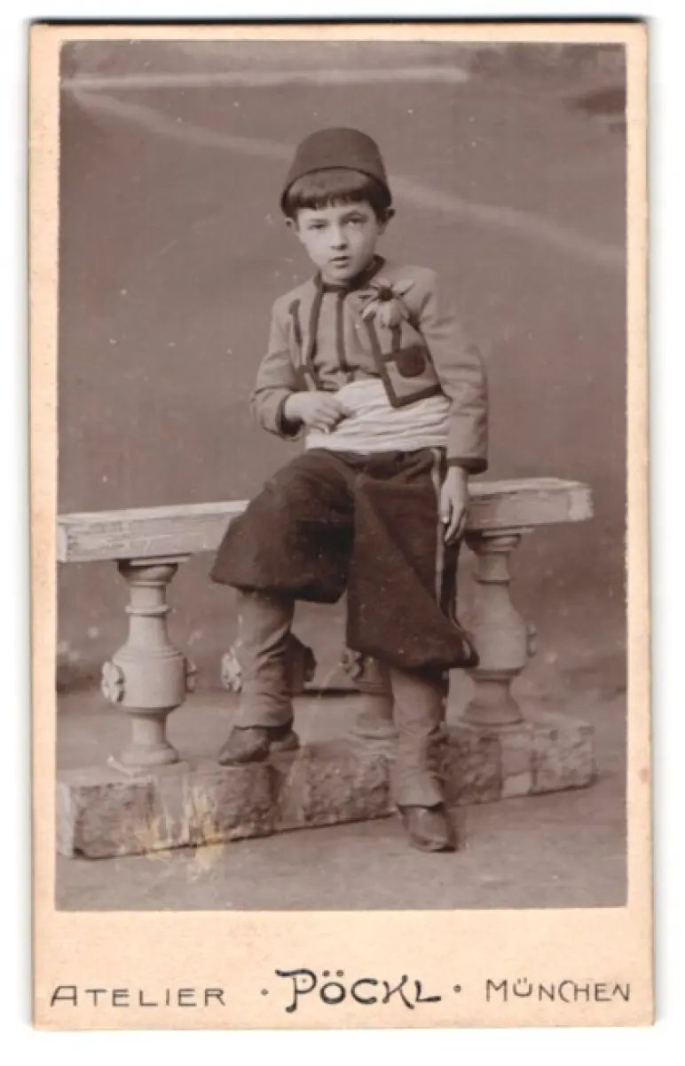 Fotografie Pöckl, München, junger Knabe als Zuave in Uniform mit Fes