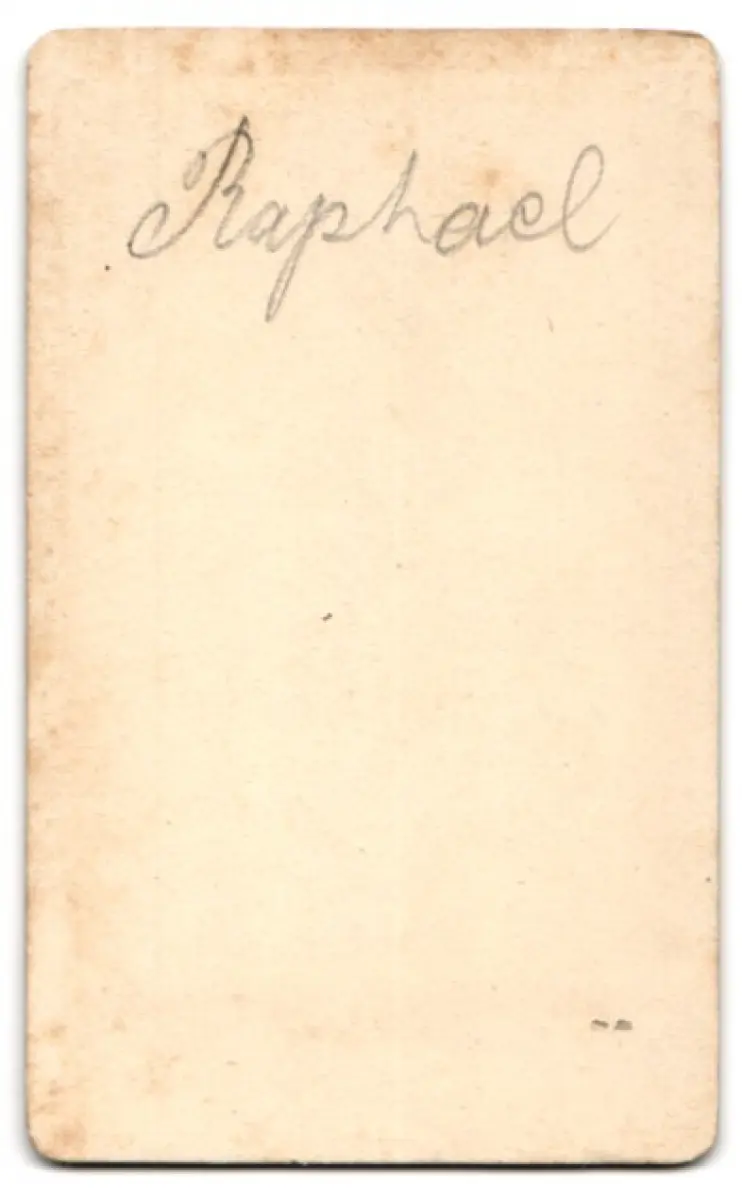 Diese CDV Fotografie zeigt das Porträt eines jungen Mannes, der einen nachdenklichen Ausdruck trägt. Sein Haar fällt in sanften Wellen bis zu den Schultern, und er trägt ein schlichtes Barett, das seinem Gesicht einen Hauch von Renaissance verleiht. Die dezente Kleidung unterstreicht die zeitlose Eleganz dieser Darstellung., guter Zustand Größe ca. 6,5 x 10,5cm