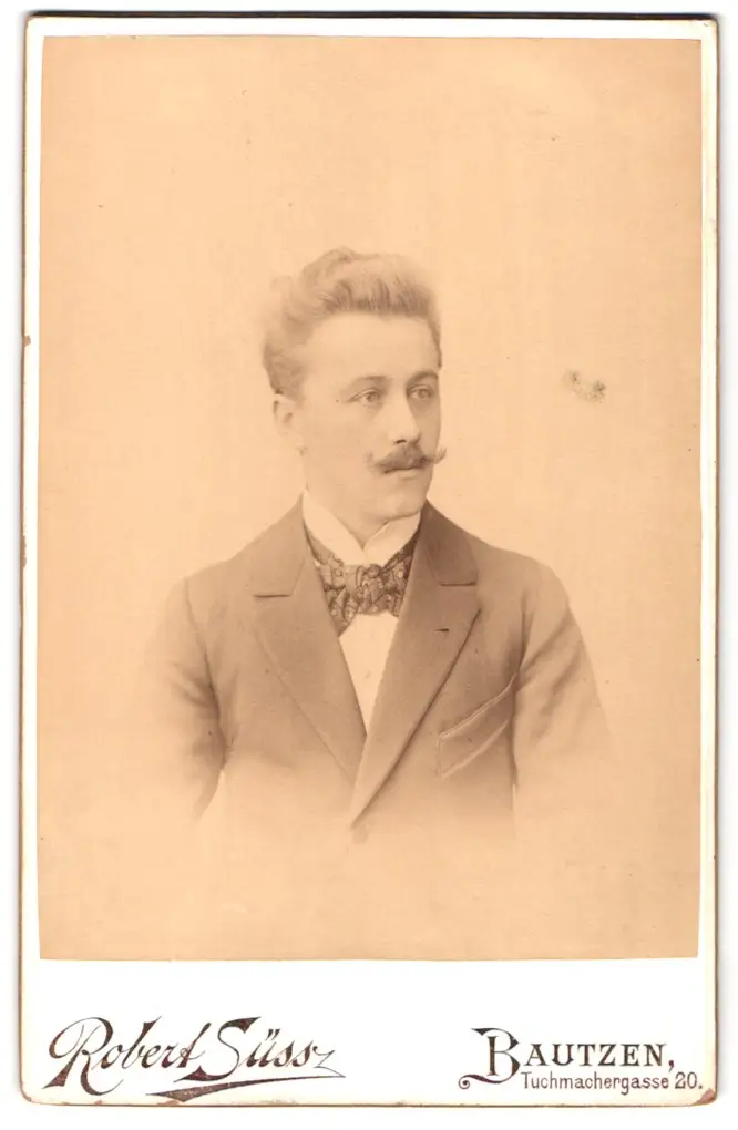 Fotografie Robert Süss, Bautzen, Tuchmachergasse 20, Portrait gepflegter Herr in Jacke mit Fliege