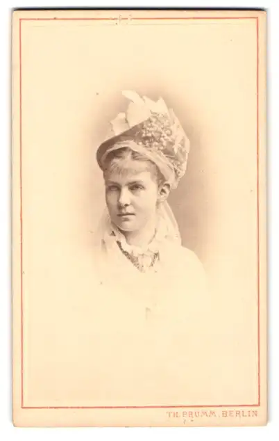 Fotografie Th. Prümm, Berlin, Unter den Linden 51, Porträt einer Dame mit elegantem Hut