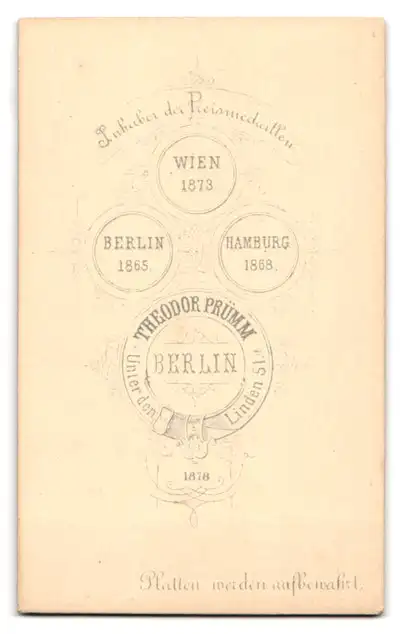 Diese CDV Fotografie präsentiert das Porträt einer Dame, die in modischer Eleganz erstrahlt. Ihr Gesicht ist von einem feinen Hut mit kunstvollen Details umrahmt, der die zeitgenössische Mode widerspiegelt. Die dezente und doch anmutige Haltung der Frau verleiht dem Bild eine subtile Anziehungskraft, die den Betrachter in eine längst vergangene Epoche entführt. Die sanften Konturen und das weiche Licht umspielen das Gesicht der Dame und fangen einen Moment der Ruhe und Erhabenheit ein., guter Zustand Größe ca. 6,5 x 10,5cm