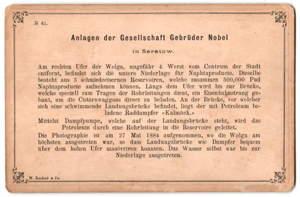 die Firma "Branobel" wurde 1876 von den beiden Brüdenr Ludvig und Robert Nobel (Brüder von Alfred Nobel) gegründet und avancierte zu einer der größten Ölunternehmen Unternehmen des zaristischen Russland, guter Zustand