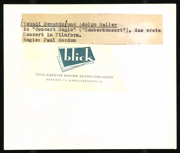 Fotografie Yehudi Menuhin und Adolph Baller im Film Concert Magic vom Regisseur Paul Gordon