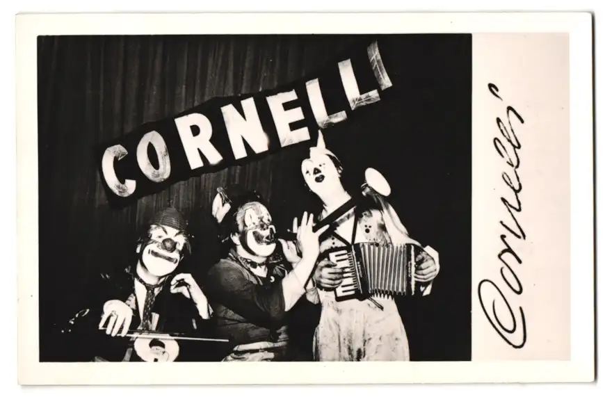 Fotografie Zirkus Cornelli, Clown-Trio beim Musizieren