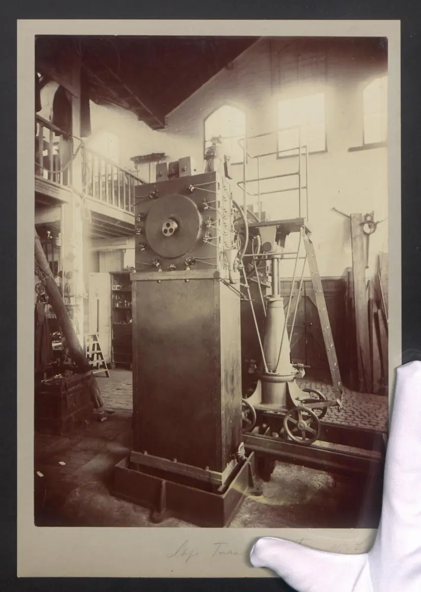 Fotografie unbekannter Fotograf, Ansicht Potsdam, Refraktor / Teleskop, Sternwarte, Werkstatt, Grossformat 23 x 33cm