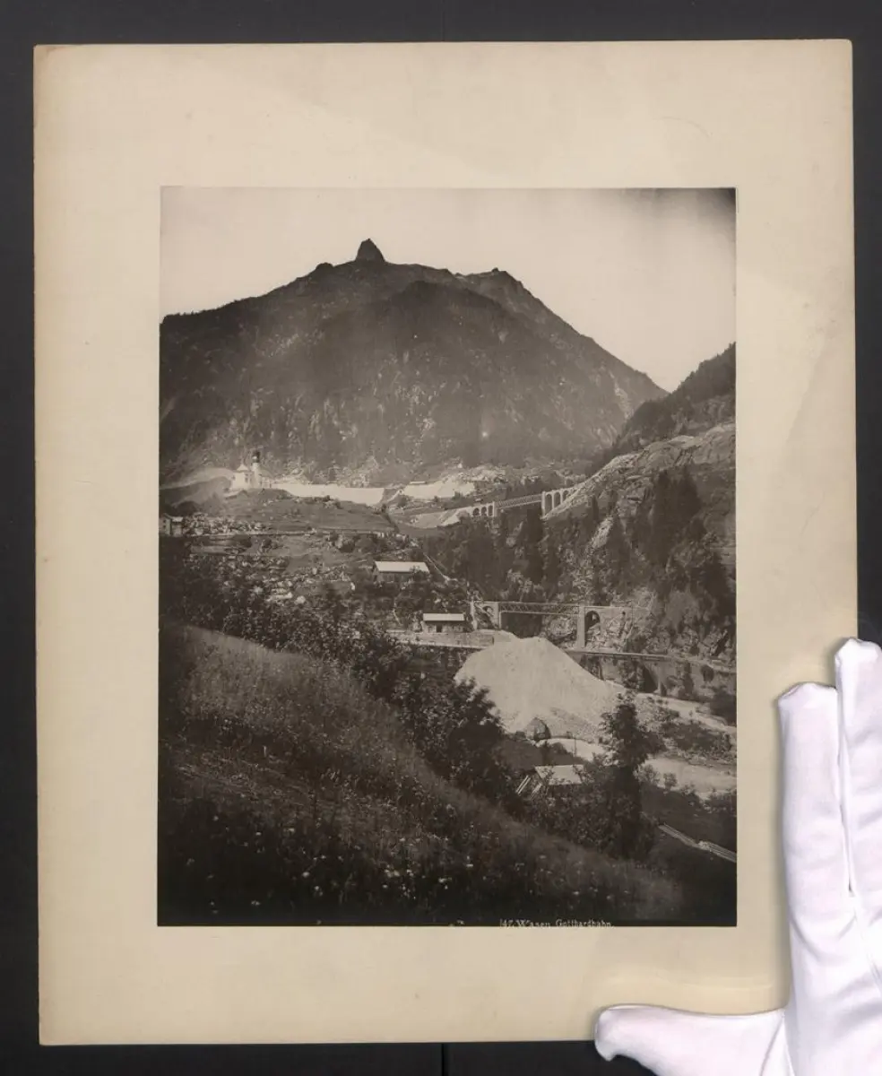 Fotografie unbekannter Fotograf, Ansicht Wasen, Teilansicht des Ortes mit der Gotthardbahn Verlauf