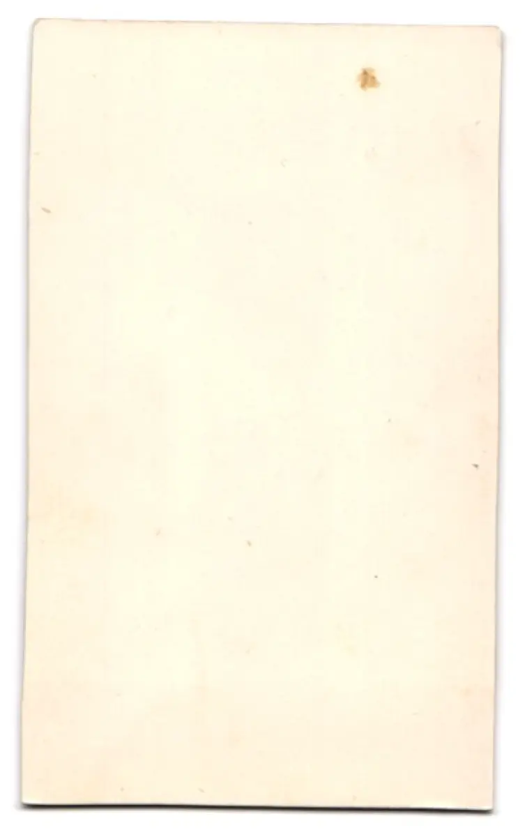 Diese CDV Fotografie offenbart das Bildnis einer jungen Frau, die in einem prachtvollen, voluminösen Kleid aus der Epoche posiert. Ihre Pose ist formell und anmutig, während sie eine Hand sanft auf die Lehne eines kunstvoll gestalteten Stuhls legt. Ihre Frisur ist schlicht und ergänzt den eleganten Gesamteindruck. Der Boden ist mit einem dekorativen Muster versehen, das dem Setting eine zusätzliche Note von Raffinesse verleiht., guter Zustand Größe ca. 6,5 x 10,5cm