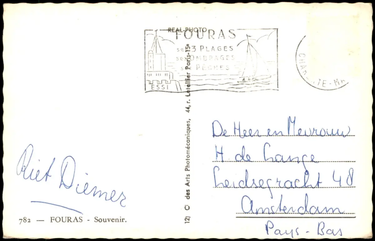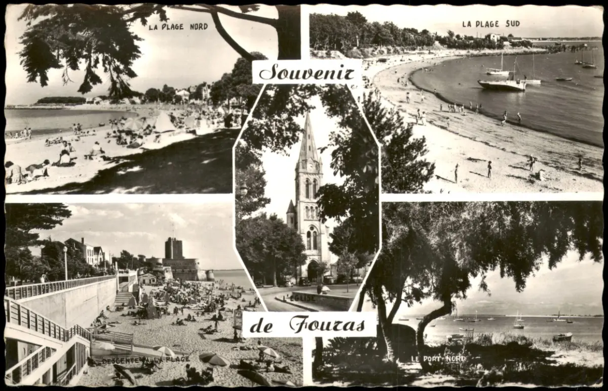 Fouras Souvenir Mehrbildkarte mit Ortsansichten u.a. Strand Plage 1955