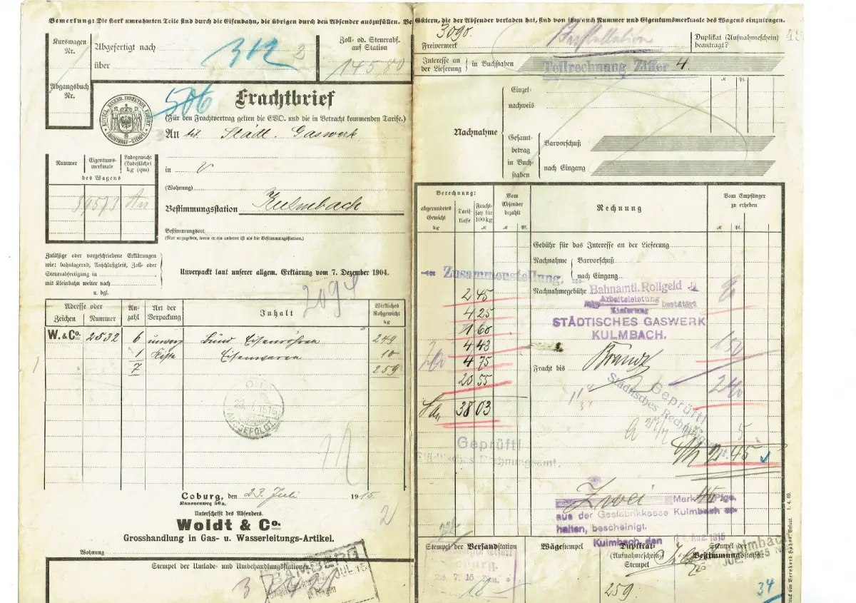 Frachtbrief Kgl. Eisenbahn Dir. ERFURT 1915 1. Weltkrieg COBURG Kulmbach #3