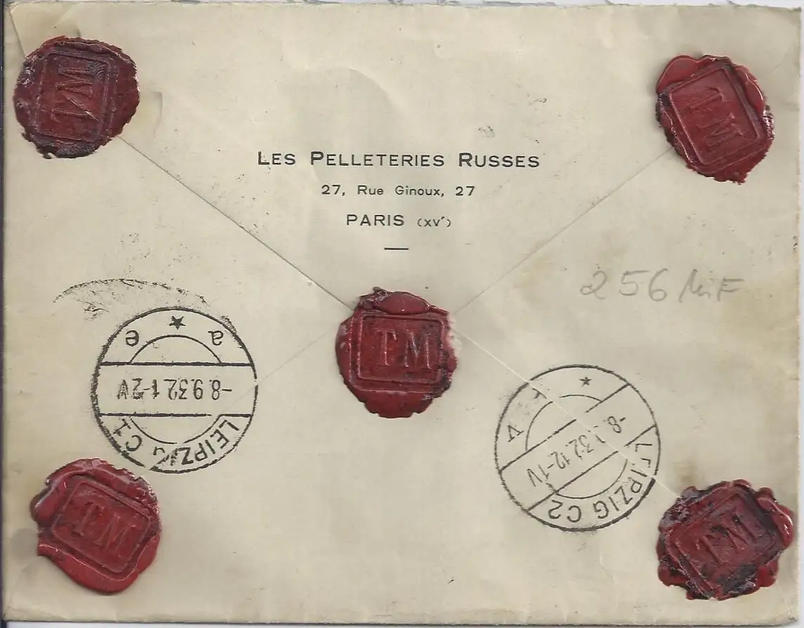 Frankreich 1932, 1+3 Fr. auf Wert Brief v. Paris n. Leipzig. "Gepr. Köln". #1954