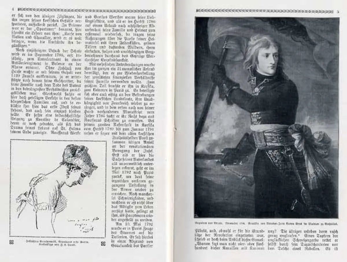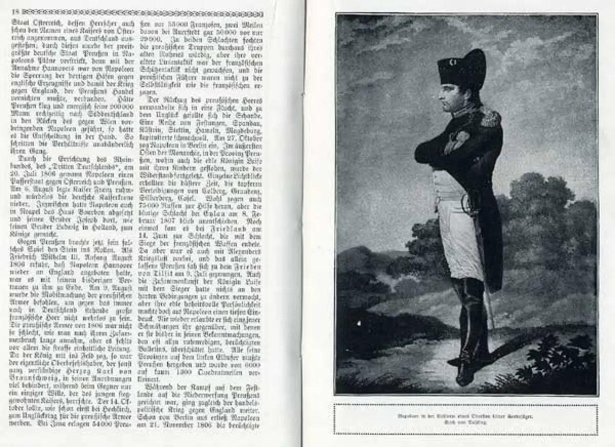 mit GESAMT 34 Seiten druckgraphischen Abbildungen biographischer Abriss Leben von Napoleon Bonaparte seiner Kindheit und Jugend, Herkunft und Familie die französische Revolution von 1789 und die militärische und politische Laufbahn von Napoleon seine Zeit als Konsul der Republik die Krönung zum Kaiser, Kriege gegen Preusen und Österreich Russlandfeldzug Völkerschlacht bei Leipzig Verbannung und Tod Bedeutung als Politiker und Feldherr