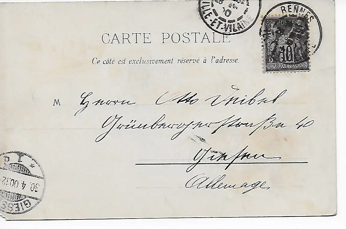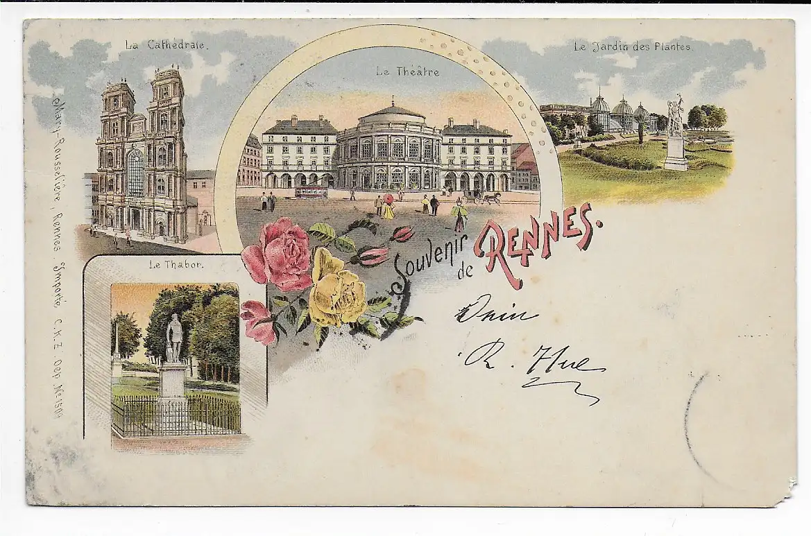 Frankreich: Litho - Ansichtskarte Rennes 1912 nach Giessen