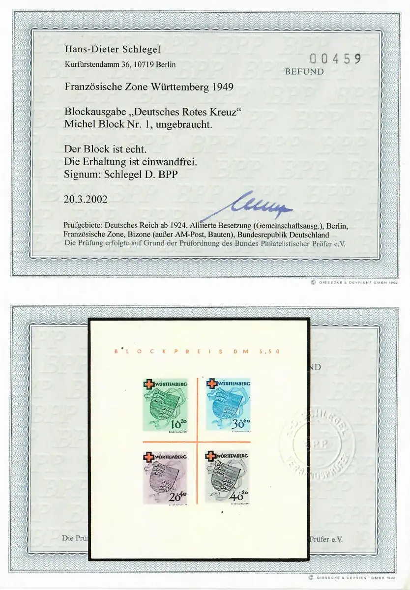 Franz. Zone Württemberg: MiNr. Block 1, ungebraucht, BPP Befund