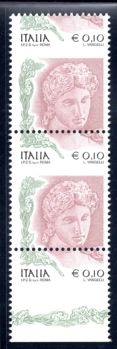 MNH ** - Frau in der Kunst 0,10 Nr. 2724A vertikales Drehmoment b. von f. unten mit stark vertikal verschobener Verzahnung Italien und Wert oben statt unten (am Rand wiederholt) - Interessant nur 10 Paare im Blatt Nr. 783/20