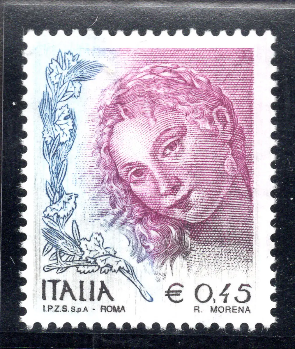 MNH - Vollgummi - Frau in der Kunst Euro 0,45 Nr. 2726 mit einer sichtbaren schwarzen Druckinfiltration am Hals der Venus von Urbino - Gelegenheits-Effekt Cod. 938/17