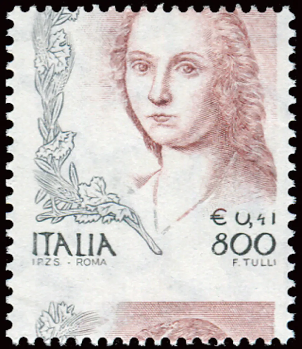 Vollgummi MNH - Frau in der Kunst Lire 800 / Euro 0,41 Nr. 2396 horizontale Verzahnung stark vertikal verschoben Cod. 718/15