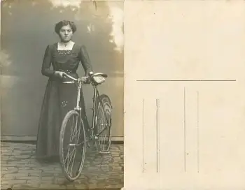 Frau mit Fahrrad Echtfoto Karte *ca. 1910