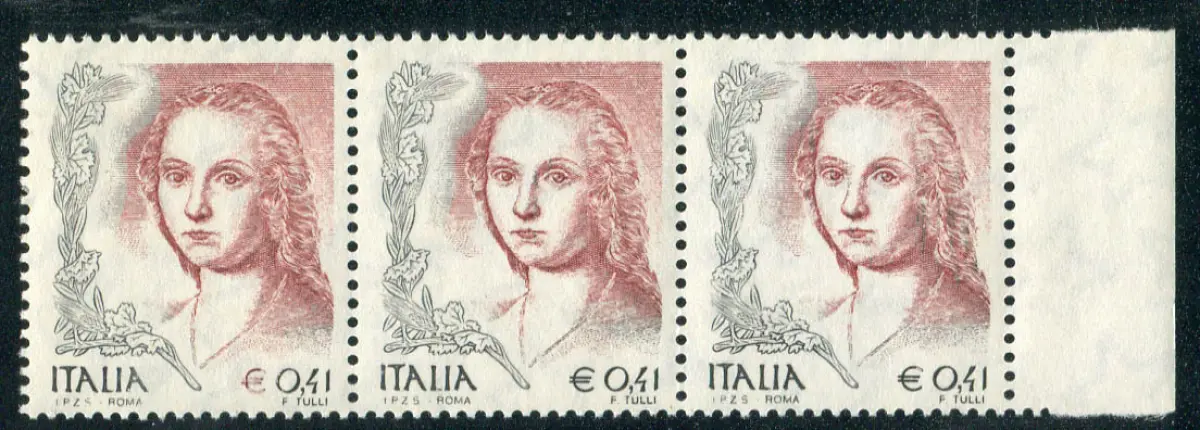 Frauen in der Kunst Euro 0,41 Euro Sorten in Rot Vollgummi - Frauen in der Kunst Euro 0,41 Streifen von drei Exemplaren, das erste mit Euro-Sorte in rot - Uncommon - Cod. 1189 / OUTLET